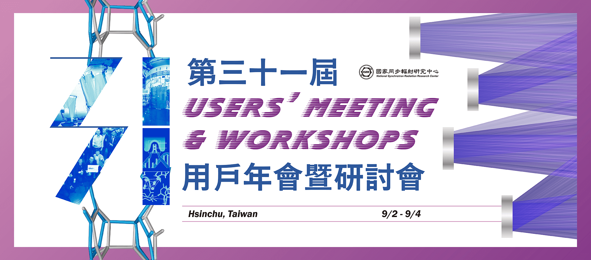 國家同步輻射研究中心(國輻中心)舉辦之用戶年會暨研討會,是國內同步輻射研究領域規模盛大且深具指標性之學術會議,每年約有250篇壁報展示,超過400人與會。今年度「第三十一屆用戶年會暨研討會」訂於9月2日至4日舉行,國輻中心用戶執行委員會誠摯邀請您蒞臨會議、發表研究成果。三天議程精彩可期,除了邀請傑出用戶發表專題演講,另安排各種讓與會人員討論交流的機會與活動,竭誠歡迎各位用戶踴躍參與,彙聚一堂。三天議程簡介如下:
