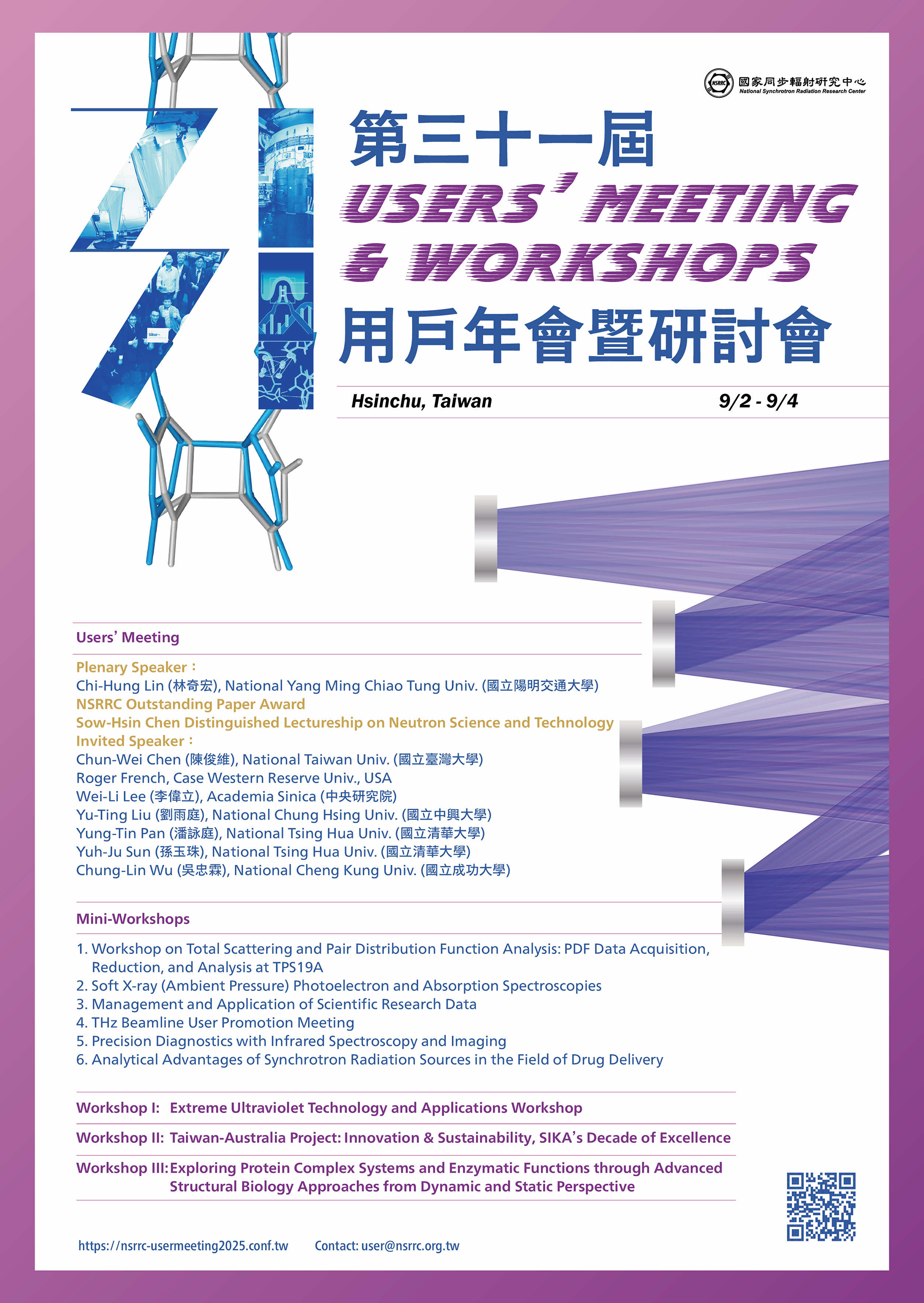 歡迎科研界的夥伴們踴躍報名,敬請於 6 月 30 日(一)前完成線上報名 (https://nsrrc-usermeeting2025.conf.tw/)。